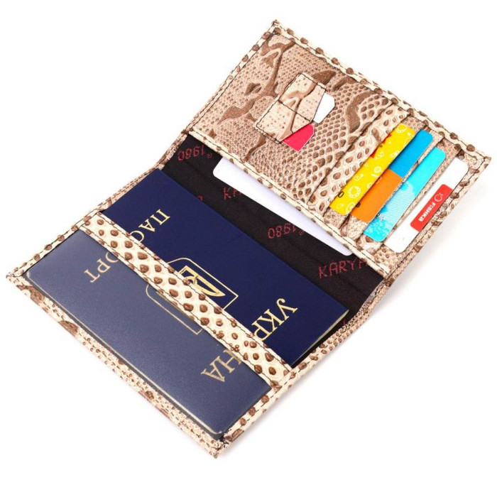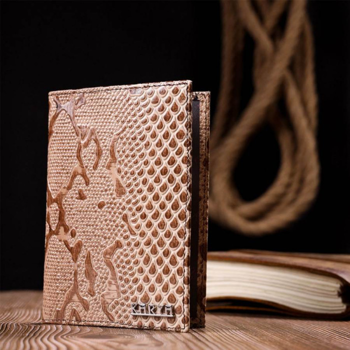 Незвичайна жіноча обкладинка на документи, молочного кольору з високоякісної шкіри з тисненням під кобру. Сучасний висококласний аксесуар, який стане ідеальним подарунком для близької людини з будь-якого приводу. Обкладинка упакована у фірмову коробочку.