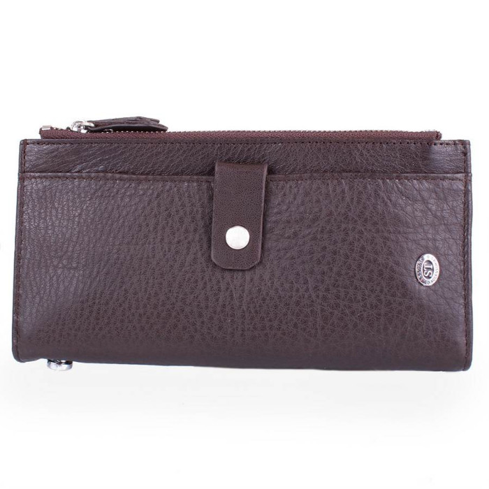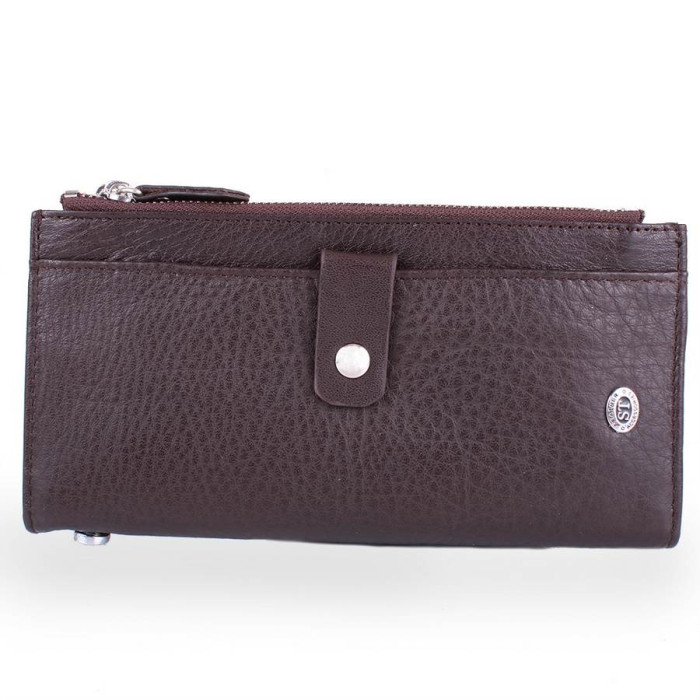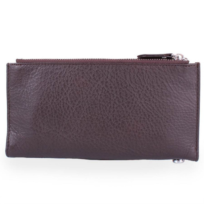 Кількість основних відділень (для купюр): 2 (мають автономні блискавки). Додаткові відділення: 3 (також можна зберігати купюри). Відділення для документів, фотокарт і перепусток: 1 (має прозоре віконце). Відділення для візиток, банківських та дисконтних карток: 11. На лицьовій стороні є ще одне додаткове відділення, яке закривається на механічну кнопку. В комплекті є знімний зап'ястного ремінець-петля. Матеріал виробу: шкіра. Колір: кавовий коричневий. Колір фурнітури: срібло. Розміри (X*Y*Z): 19*9,5*1,8 см. Аксесуар закривається за допомогою блискавок (бічні відділення для купюр), а також механічних кнопок. Виріб упаковано в фірмову картонну коробку. Країна походження торгової марки ST Leather Accessories - Україна. Гарантія: 1 місяць.