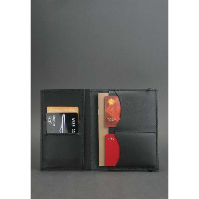 Стильна і функціональна обкладинка для паспорта, в якій поміститься не тільки паспорт, але і пластикові карти (наприклад, водійські права). Для картки є спеціальний отвір в передній частині обкладинки. У цю модель ми додали ще більше кишеньок - один великий і 4 для візиток або карток.