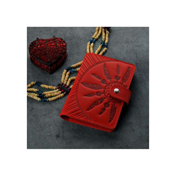 Обкладинка для паспорта «Інді» – відмінне тому доказ. Зроблена з добротного шкіри, вона стала ідеальним полотном для зображення ловця снів. Тиснення настільки чітке й акуратне, що неможливо перестати ковзати по ньому пальцями! Чому саме ловець снів? Індійці вірять, що він оберігає від злих духів і невдач. У нашому випадку – від втрати важливих речей. Функціональна складова продумана до дрібниць: відділення для паспота і два додаткових відділення (наприклад для закордонного паспорта та виду на проживання). Крім того, є два відділення для банківських або дисконтних карт.