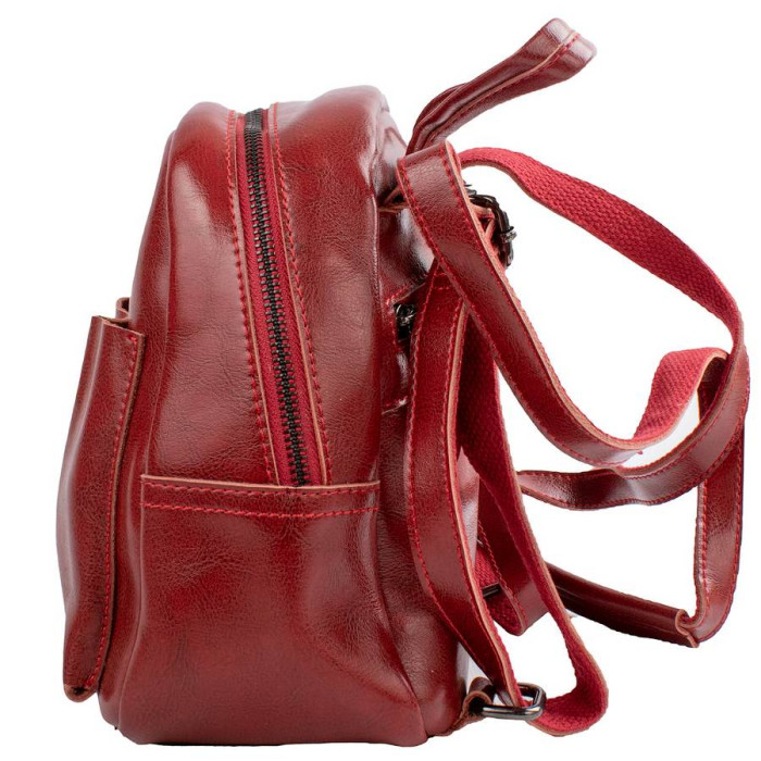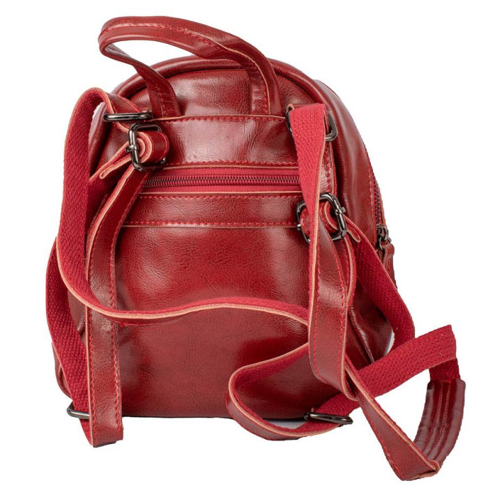 Розміри (X*Y*Z): 19 (в найширшому місці) х 20 х 11 см. Матеріал виробу: шкіра. Колір: червоний. Колір фурнітури: чорне срібло. Кількість основних відділень: 1. Усередині є 1 кишеня на блискавці та накладній. На тильній стороні розташована 1 кишеня на блискавці. На лицьовій стороні розташована кишеня магнітної кнопки. Рюкзак має щільну ручку, щоб переносити виріб у руці або повісити на гачок. Дно виробу ущільнене. Рюкзак закривається за допомогою блискавки. Виріб упакований у поліетиленовий пакет. Документи формату А4 не поміщаються у рюкзак. Країна походження торгової марки VALIRIA FASHION та країна-виробник - Китай. Гарантія: 3 місяці.