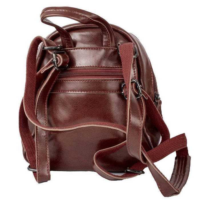 Розміри (X*Y*Z): 19 (в найширшому місці) х 20 х 11 см. Матеріал виробу: шкіра. Колір: коричневий. Колір фурнітури: чорне срібло. Кількість основних відділень: 1. Усередині є 1 кишеня на блискавці та накладній. На тильній стороні розташована 1 кишеня на блискавці. На лицьовій стороні розташована кишеня магнітної кнопки. Рюкзак має щільну ручку, щоб переносити виріб у руці або повісити на гачок. Дно виробу ущільнене. Рюкзак закривається за допомогою блискавки. Виріб упакований у поліетиленовий пакет. Документи формату А4 не поміщаються у рюкзак. Країна походження торгової марки VALIRIA FASHION та країна-виробник - Китай. Гарантія: 3 місяці.