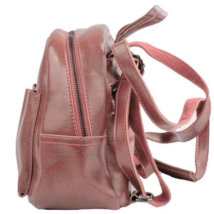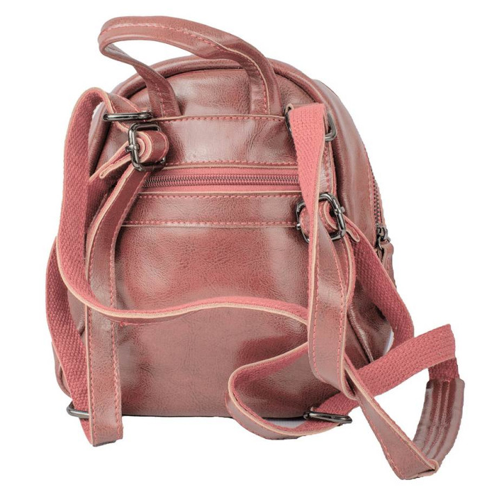 Розміри (X*Y*Z): 19 (в найширшому місці) х 20 х 11 см. Матеріал виробу: шкіра. Колір: рожевий. Колір фурнітури: чорне срібло. Кількість основних відділень: 1. Усередині є 1 кишеня на блискавці та накладній. На тильній стороні розташована 1 кишеня на блискавці. На лицьовій стороні розташована кишеня магнітної кнопки. Рюкзак має щільну ручку, щоб переносити виріб у руці або повісити на гачок. Дно виробу ущільнене. Рюкзак закривається за допомогою блискавки. Виріб упакований у поліетиленовий пакет. Документи формату А4 не поміщаються у рюкзак. Країна походження торгової марки VALIRIA FASHION та країна-виробник - Китай. Гарантія: 3 місяці.