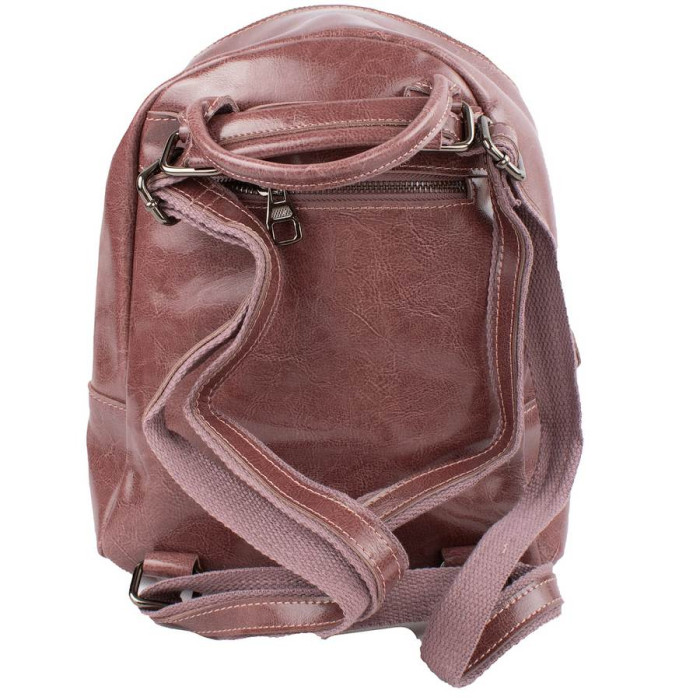 Зовнішні розміри рюкзака: 23 (замір по дну, вгорі звужується рюкзак) х 26 х 12. Кількість основних відділень: 1. Усередині є 1 кишеня на блискавці та 2 накладні. Матеріал: шкіра. Матеріал підкладки: тканина. Колір: темно-рожевий. Колір фурнітури: чорне срібло. На тильній стороні розташована 1 кишеня на блискавці. На лицьовому боці прорізна кишеня на блискавці. Рюкзак має щільну ручку, щоб переносити виріб у руці або повісити на гачок. Дно виробу ущільнене. Рюкзак закривається за допомогою блискавки. Виріб упакований у поліетиленовий пакет. Документи формату А4 не поміщаються у рюкзак. Країна походження торгової марки VALIRIA FASHION та країна-виробник - Китай. Гарантія: 3 місяці.