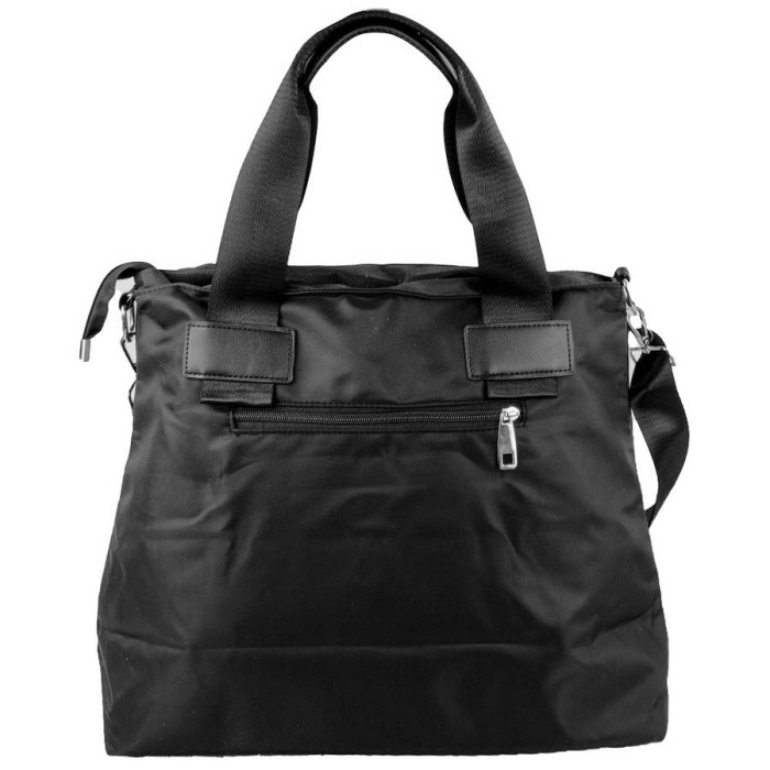 Зовнішні розміри: 39 (замір по дну) х 32 х 14 см. Обсяг без урахування кишень: 18 л. Вага: 620 гр. Матеріал: тканина. Колір: чорний. Колір металевої фурнітури: срібло. Кількість основних відділень: 1. Всередині є кишеня на блискавці і 2 накладних кишені. На тильній стороні розташована кишеня на блискавці. Модель має дві незнімні ручки для перенесення в руці (Довжина - 50 см). У комплект входить знімний плечовий ремінь, довжина якого регулюється (максимально 142 см). Сумка закривається за допомогою блискавки. Виріб упаковано в поліетиленовий пакет. Документи формату А4 поміщаються в сумку. Країна походження торгової марки VALIRIA FASHION, а також Країна-виробник-Китай. Гарантія: 1 місяць.