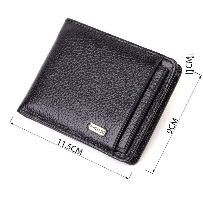 Функціональний гаманець для стильних та впевнених у собі чоловіків із натуральної шкіри. Аксесуар має основне відділення для купюр, шість кишень для карток, кишеню під сіточкою, чотири приховані кишені та монетницю. Гаманець складається навпіл, без застібки. На лицьовій стороні в правому нижньому кутку розташований металевий логотип компанії виробника. Багатофункціональний чоловічий гаманець з дуже міцної шкіри чудовий вибір подарунка для солідного чоловіка.