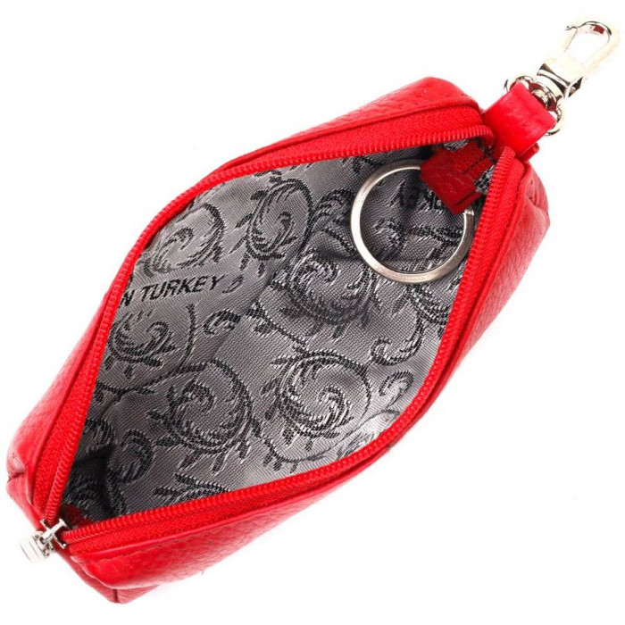 Яскрава ключниця, червоного кольору із натуральної шкіри. Всі матеріали з яких виконано виріб – шкіра, фурнітура, підкладка – високої якості з підвищеними показниками стійкості до різного зносу. Аксесуар упакований у фірмову коробку, буде чудовим подарунком для будь-якої жінки.
