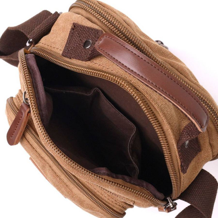 Надійна чоловіча сумка із якісного щільного текстилю. Аксесуар має два основних відділення, внутрішні дві кишені на блискавці, та відкритого типу, і три зовнішні кишені на блискавках, різних розмірів. Сумку можна носити в руці, на плечі та через плече. У поєднанні з якісною фурнітурою та міцною підкладкою сумка прослужить Вам не один рік. Виріб стане чудовим подарунком для будь-якого чоловіка.