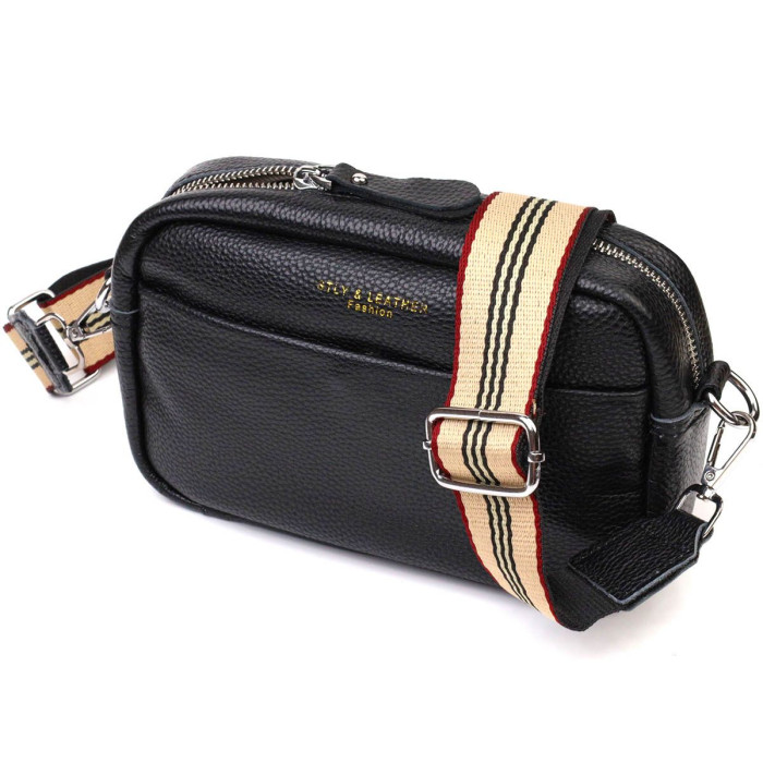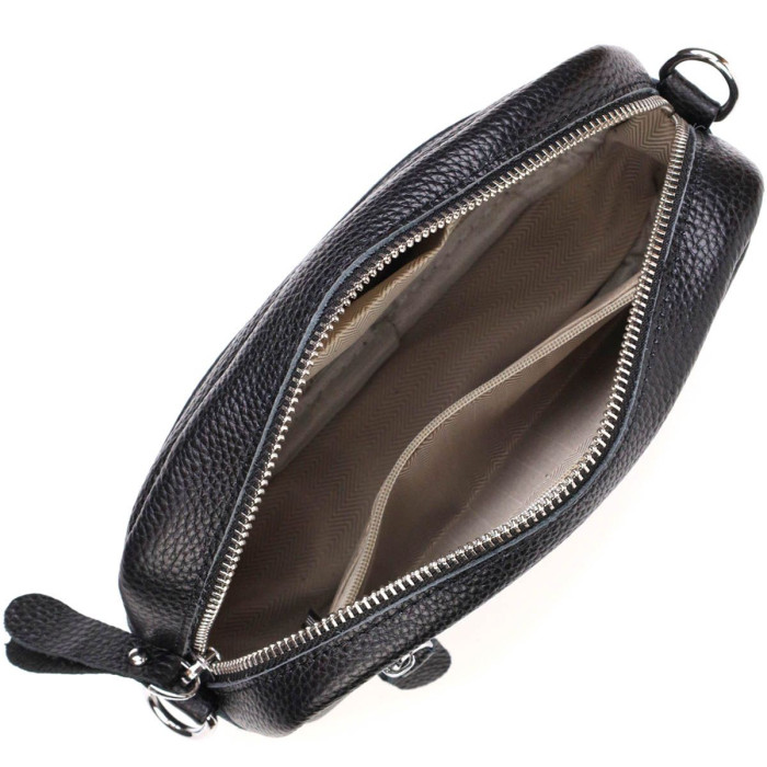 Жіноча сумка з натуральної шкіри високої якості в класичному чорному кольорі. Виріб дуже зручний, можна носити на плечі та через плече. Модель доповнена фурнітурою кольору срібла. Аксесуар має одне основне відділення на блискавці в якому дві кишеньки - одна на блискавці та одна відкритого типу, а також кишеня на блискавці зовні, на тильній стороні та кишеня на магніті на лицьовій стороні. Модель закривається на блискавку. Ідеальний варіант для будь-якої дівчини на будь-який сезон.