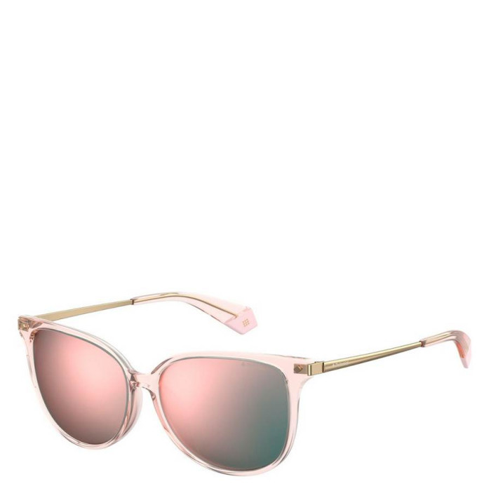 Об'єднання рожевого і золотого кольорів утворює дивно ніжний ансамбль. Додатково до цього жіночі окуляри марки POLAROID акцентують увагу на напівпрозорому пластику оправи з гладкою поверхнею і плавними контурами. В унісон звучать дзеркальне напилення, фурнітура - рожево-золотава колірна гамма витримана в кожному елементі вироби. Аксесуар для захисту від сонця красиво доповнить образ, підкреслить Ваш вишуканий смак. Широка прямокутна форма оправи забезпечує надійний захист очей і шкіри навколо них - яскраве світло, ультрафіолет, горизонтально спрямовані відблиски затримають поляризаційні сірі лінзи. У нашому інтернет-магазині купити до нового сезону стильні брендові окуляри від сонця Ви можете вже сьогодні. Ціна - вигідна.