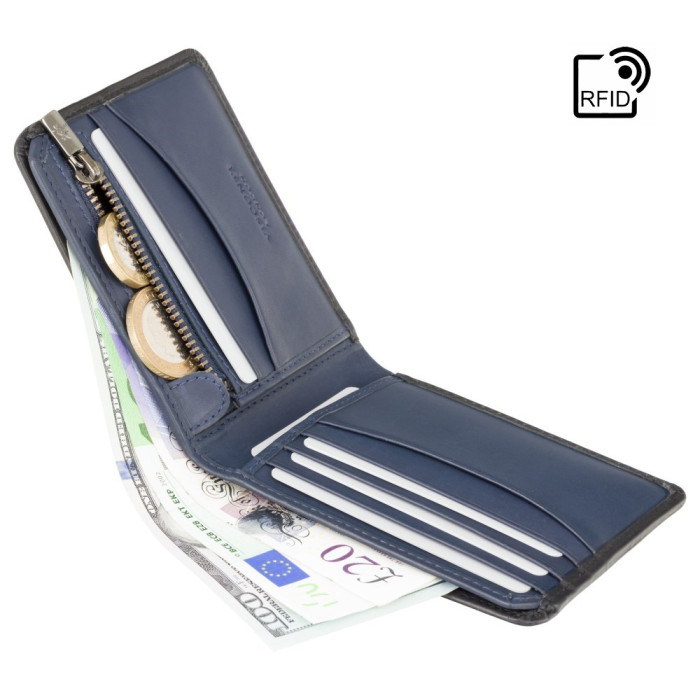 Характеристики - Гаманець чоловічий Visconti PLR72 Segesta c RFID (Steel Blue-Orange) Матеріал нат..