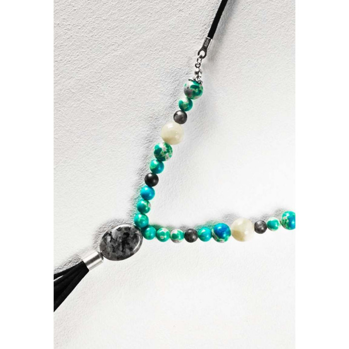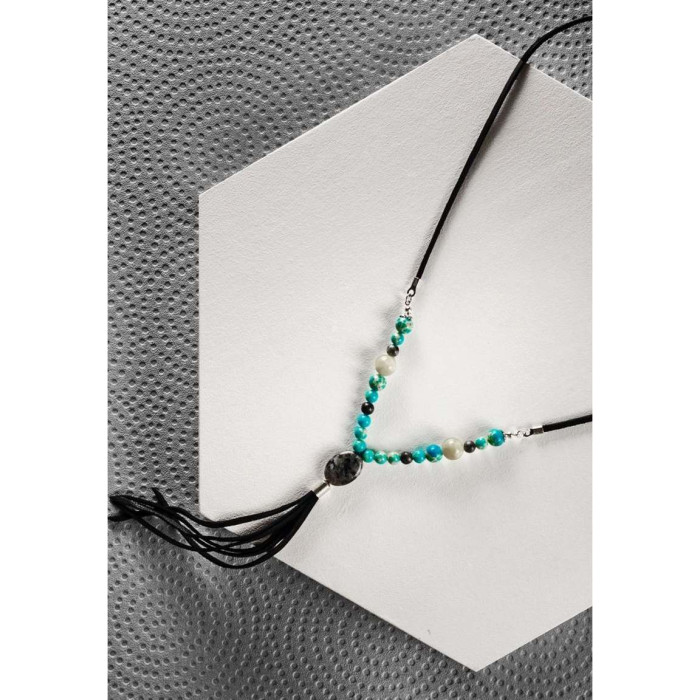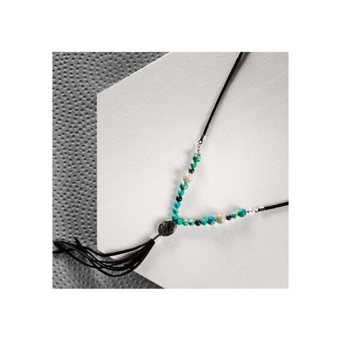 Ніжні намистини з натуральних каменів, нанизані на замшевий шнур і прикрашені пензликом, виглядають неймовірно витончено і жіночно. Але ні в якому разі не нудно! Така прикраса доповнить сміливий, яскравий етно-образ і обов'язково зверне на себе увагу.