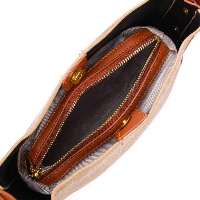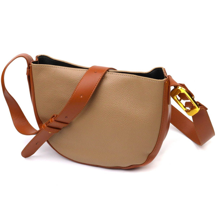 Чудова жіноча сумка на кожен день із натуральної шкіри високої якості. Виріб дуже зручний, можна носити на плечі та через плече. Модель доповнена якісною фурнітурою, колір жовтого золота. Аксесуар має одне основне відділення, всередині якого тканинна косметичка на блискавці. Стильна та зручна сумка яка розмістить усі дрібниці та навіть більше.