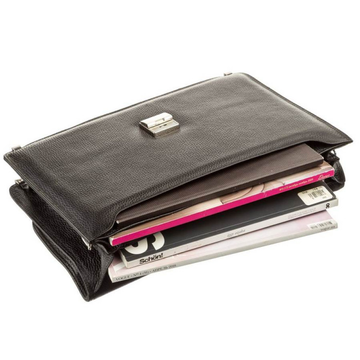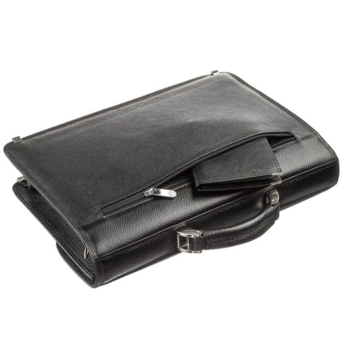 - кишеня на блискавці на тильній стороні; елегантний чоловічий портфель з натуральної шкіри високої якості. Аксесуар виконаний з твердої шкіри і має високу стійкість до подряпин. Модель відмінно підкреслить Ваш відмінний смак. Аксесуар підійде для солідних і статусних чоловіків. Фурнітура в моделі виконана з міцного металу сріблястого кольору. Внизу виробу є металеві ніжки для зносостійкості виробу. У портфель легко вміститься ноутбук або планшет, документи А4. При бажанні портфель можна застебнути на кодовий замок, і ваші речі будуть в цілковитій безпеці. Прекрасний подарунок для будь-якого чоловіка. У комплекті йде фірмовий тканинний мішок для зберігання.