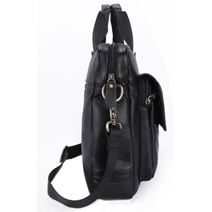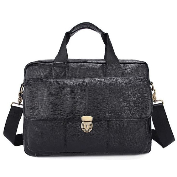Аксесуар доповнено текстильним ремінцем, що знімається, для носіння на плечі і ручками для носіння в руках. Портфель має оригінальний і стильний дизайн, розроблений спеціально для ділових чоловіків. Щоб ваші речі були в безпеці сумка доповнена замком, який закривається на ключ. Аксесуар буде ідеальним варіантом на роботу або навчання. Портфель доповнений золотистою фурнітурою і прошитий чорною ниткою. Буде чудовим подарунком для близької людини.