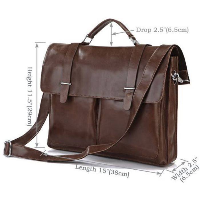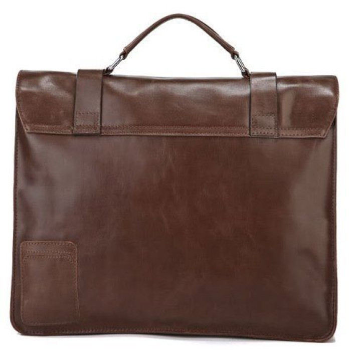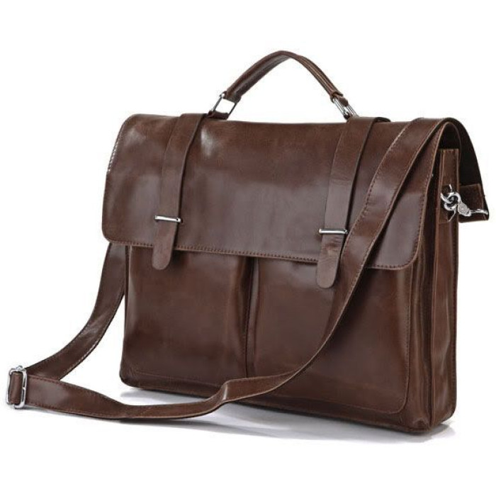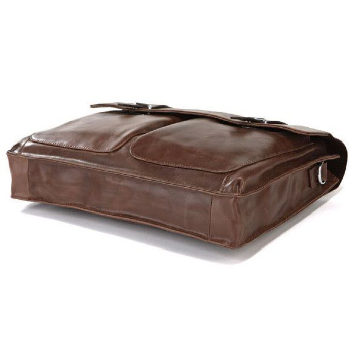 Ексклюзивний чоловічий шкіряний портфель з високоякісної натуральної шкіри. Колір фурнітури: срібло. Закривається портфель клапаном на 2-х хлястиках і 2-ма кнопками. Під клапаном розташовані дві симетричні кишені на блискавках. На задній зовнішній стороні аксесуара знаходиться невелика кишенька для пластикових карток або невеликого мобільного телефону. Портфель упакований в текстильний пилозахисний мішечок.