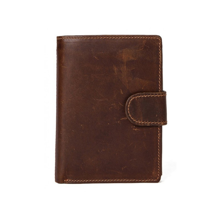 cтиль: класика, casual каркасна модель теляча шкіра гладка вінтажна поверхня колір: коричневий розмір (см): 9 х 13 х 2 одне основне відділення + слоти для карток + монетниця тип портмоне: подвійне складанняОбираючи RoyalBag, Ви отримуєте: