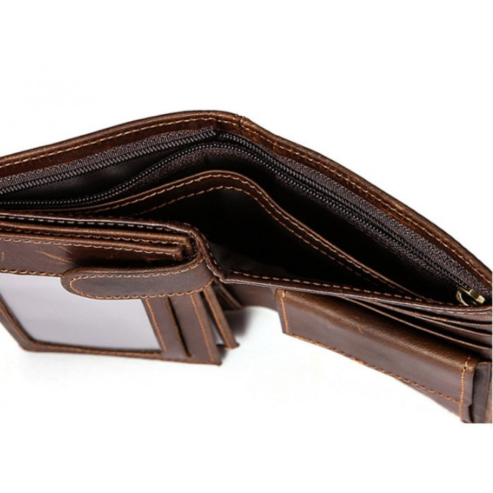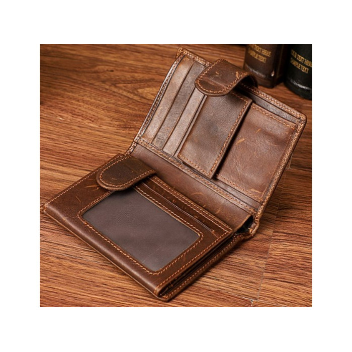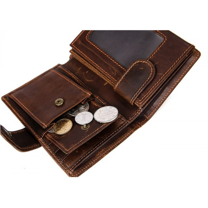 Представляємо Вашій увазі дивовижне поєднання класичного виконання і вінтажного стилю - чоловічий гаманець з натуральної телячої шкіри. Практична гладка поверхня гарантує акуратний зовнішній вигляд аксесуара навіть при тривалому використанні. Три відділення для купюр, одне з яких на блискавці, безліч слотів для карток, відсік для фото або прав, монетниця гарантовано розмістять все необхідне. Портмоне подвійного складання з клапаном на кнопці відрізняється місткістю, але при цьому компактними розмірами, воно легко поміститься як в кишені, так і в діловому портфелі.