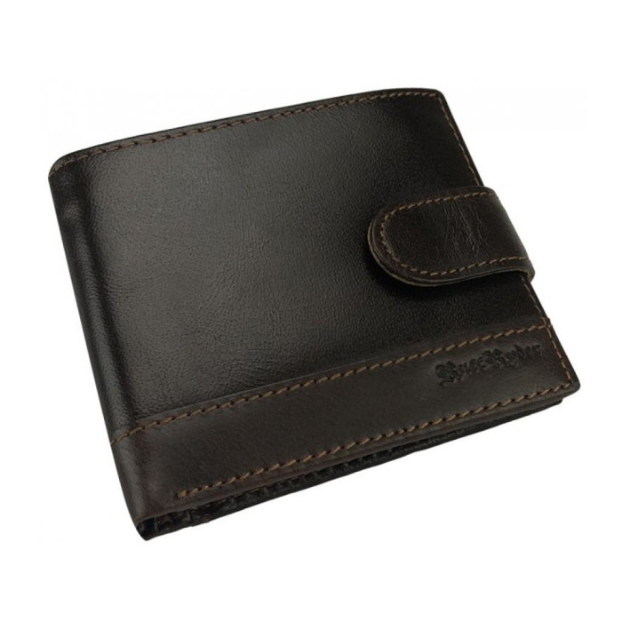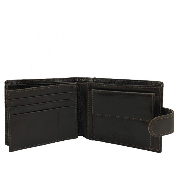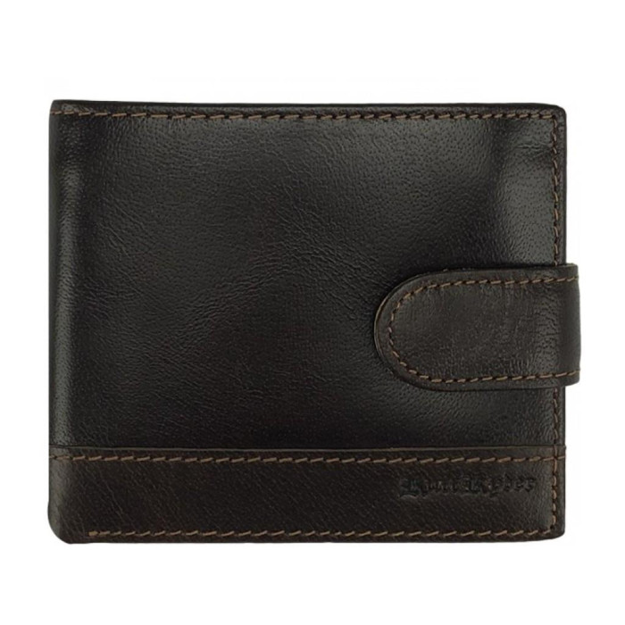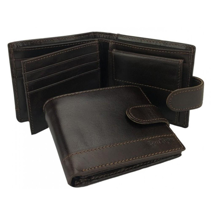 Функціональний чоловічий гаманець у вишуканому шоколадному кольорі. Портмоне закривається на клапан з кнопкою, має два відділення для купюр, безліч слотів для пластикових карт або візиток і монетницю. Приємна на дотик, м'яка, але в той же час міцна, поверхня шкіри, надійна прострочки шовковою ниткою і елемент тиснення з зовнішньої сторони роблять представлений аксесуар не тільки практичним помічником на кожен день, але й прекрасним доповненням повсякденного стилю casual.