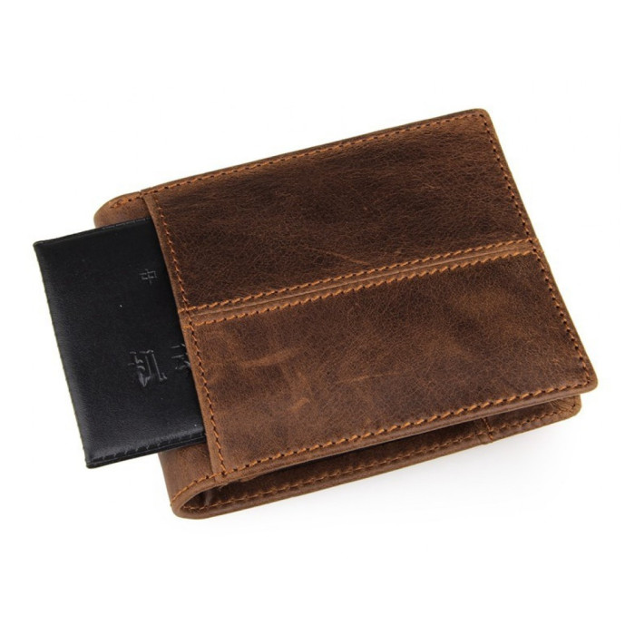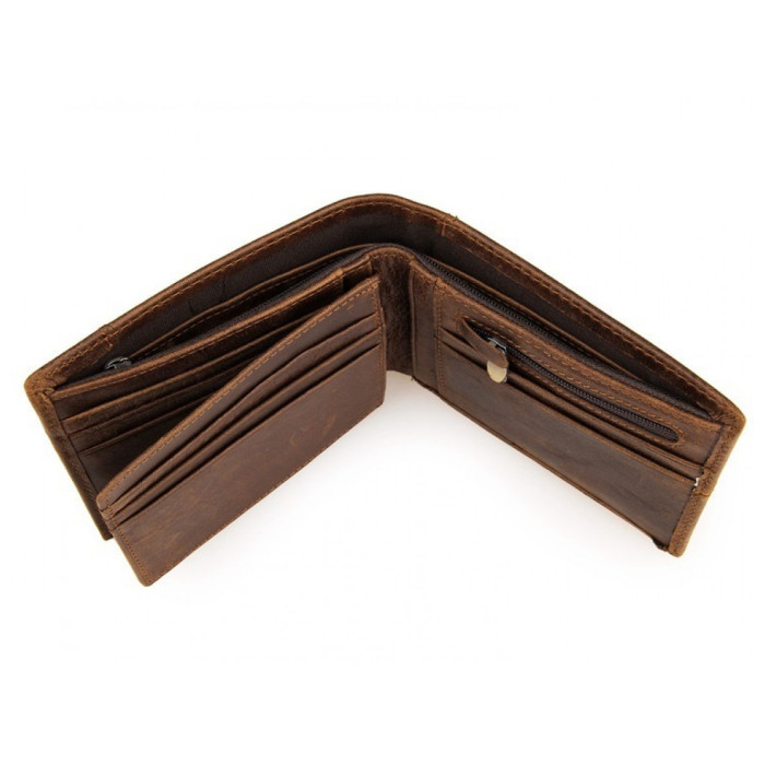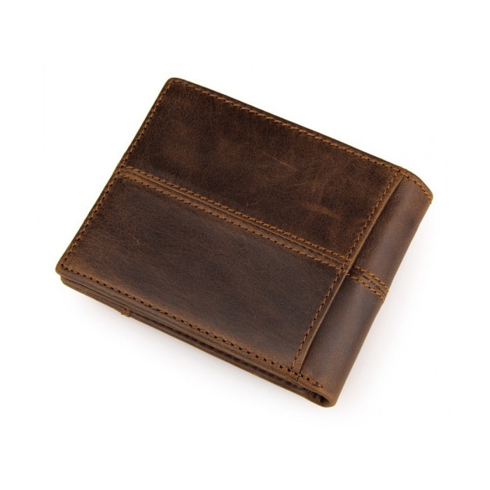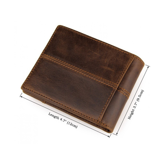 cтиль: класика, casual каркасна модель теляча шкіра гладка вінтажна поверхня колір: коричневий розмір (см): 12 х 9 х 2 одне основне відділення + слоти для карток + монетниця тип портмоне: подвійне складанняОбираючи RoyalBag, Ви отримуєте: