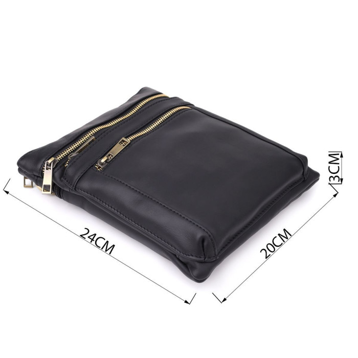 Чоловіча шкіряна сумка в чорному кольорі виготовлена з гладкої натуральної шкіри з благородним матовим блиском. Цей лаконічний та функціональний аксесуар поєднує у собі стриманий стиль та продуману ергономіку, ідеально підходячи для повсякденного використання у міському ритмі.