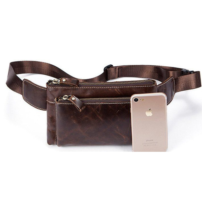 Якісна чоловіча сумка на пояс з натуральної шкіри високої якості. Сумки такого плану завоювали свою популярність серед клієнтів. Оптимальна модель в дорогу або подорож. З такою сумкою все необхідне буде завжди під рукою і в безпеці. Така сумка буде прекрасним подарунком для близької людини, як для чоловіка, так і для жінки. Аксесуар упакований в текстильний мішок, що захищає його від попадання пилу і зносу.