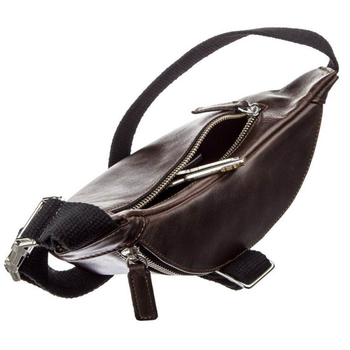 Чудова чоловіча бананка з натуральної шкіри темно-коричневого кольору стане ідеальним завершенням образу сучасного ділового чоловіка. Cумка виконана з італійської шкіри. Вона виглядає дуже стильно, завдяки красиво підібраній фурнітурі кольору срібла, елегантним рівним рядкам і якісній шкірі. Ідеальний подарунок для близької людини. Сумка упакована в якісний фірмовий повстяний чохол.