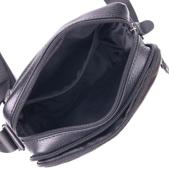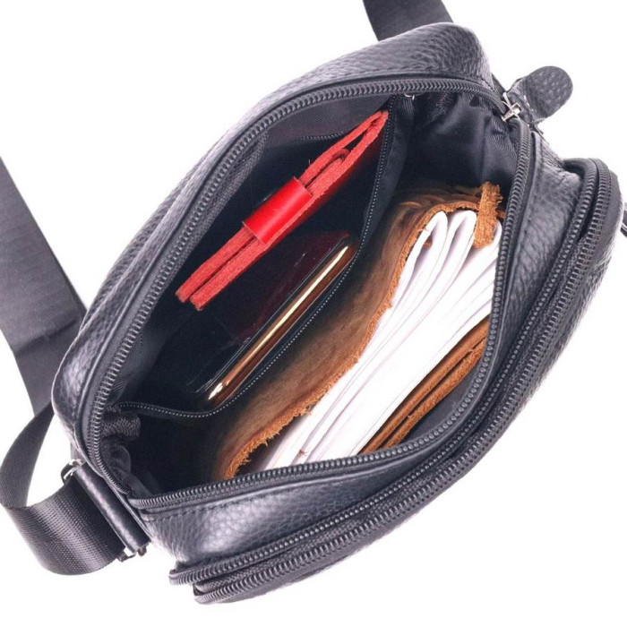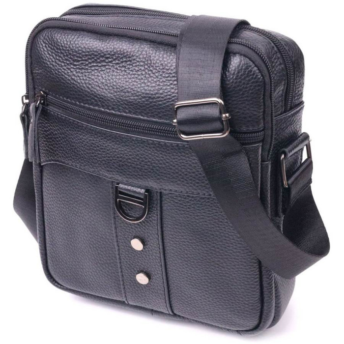 Сучасна чоловіча сумка середнього розміру із натуральної зернистої шкіри. Модель, яка ідеально підійде на кожен день. В аксесуарі одне основне відділення та чотири кишені різних розмірів, сумку зручно носити на плечі. У сумку з легкістю помістяться всі необхідні речі. З таким аксесуаром усі Ваші речі будуть в порядку, з ним також буде зручно ходити на роботу чи зустрічі. Доповнено виріб якісною фурнітурою, темно-сріблястого кольору. Сумка стане чудовим подарунком для близької людини.