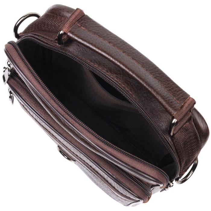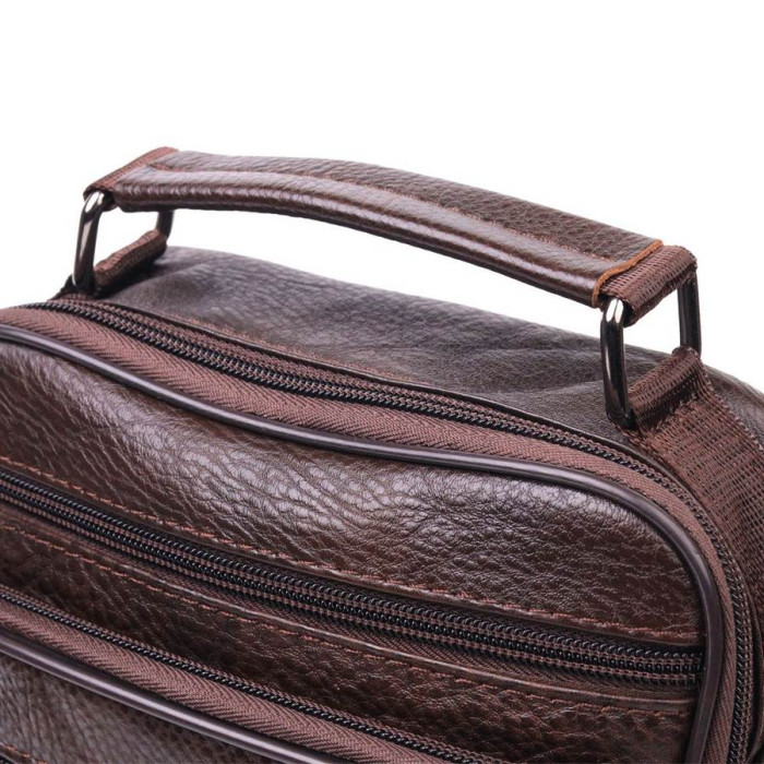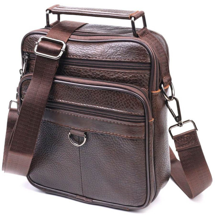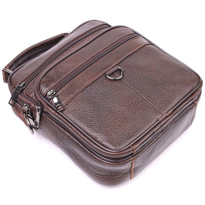 Коричнева чоловіча сумка середнього розміру із натуральної шкіри. Модель ідеально підійде на щодня. У сумку з легкістю помістяться всі необхідні речі. З такою сумкою зручно ходити на роботу або зустрічі. Доповнено виріб якісною фурнітурою, темно-срібного кольору. Сумка стане чудовим подарунком для близької людини.