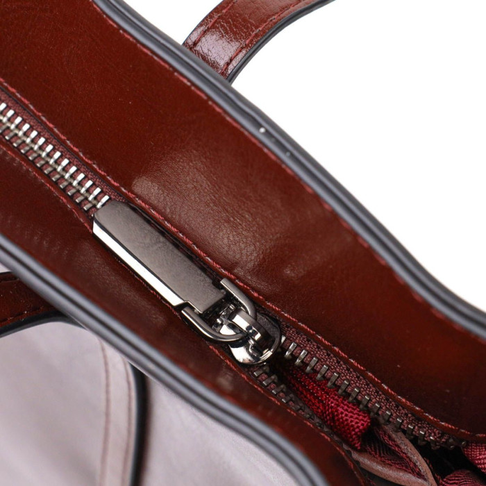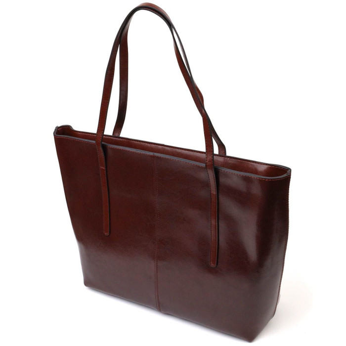 Зручна жіноча сумка з натуральної шкіри високої якості. Виріб дуже зручний, можна носити на плечі та в руці. Аксесуар має одне основне відділення в якому потайна кишеня на блискавці, подвійна бічна кишеня відкритого типу та кишеня-перегородка на блискавці, на всю довжину. На дні сумки є металеві ніжки для захисту виробу від пошкоджень. Ідеальний варіант сумки для будь-якої жінки на кожен день.