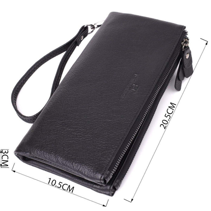 Універсальний гаманець-клатч, який відрізняється своєю місткістю. У цю модель легко поміститься ваш смартфон. Таким чином, модель здатна замінити вечірню сумочку. Носити клатч можна за допомогою шкіряного ремінця на зап'ястя. Дві місткі кишені допоможуть зручно розкласти вам гроші, також клатч має достатньо слотів для кредиток. Перевагою даного кольору є те, що він не прив'язує вас до певної палітри кольорів в гардеробі. Він підходить під усе. Сам клатч м'який і приємний на дотик. На лицьовій стороні по центру - тиснений логотип виробника, що є знаком якості та оригінальності виробу. Усередині клатч зроблений з натуральної шкіри та щільного текстилю. У комплекті йде фірмова коробка із логотипом бренду. Шкіряний клатч стане найкращим подарунком для близької людини.