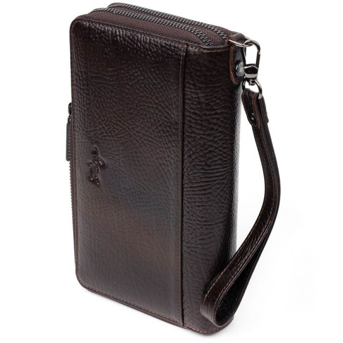 Оригінальний чоловічий клатч із натуральної зернистої шкіри з використанням добротного текстилю (внутрішня підкладка). Носиться за допомогою ремінця на зап'ясті або просто в руці. Використовується якісна фурнітура кольору темного срібла. Барсетка одночасно, компактна і функціональна. З таким аксесуаром чоловік буде виглядати солідно і впевненим у собі.