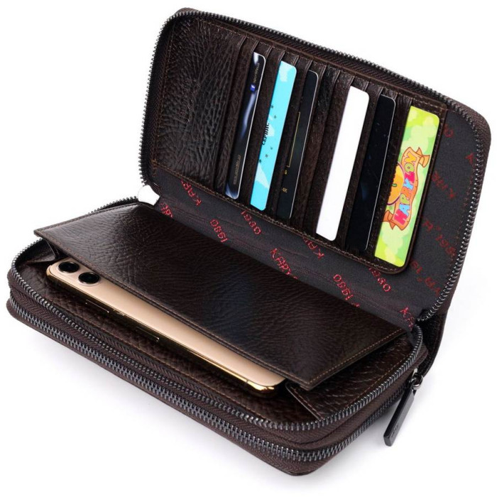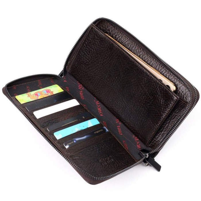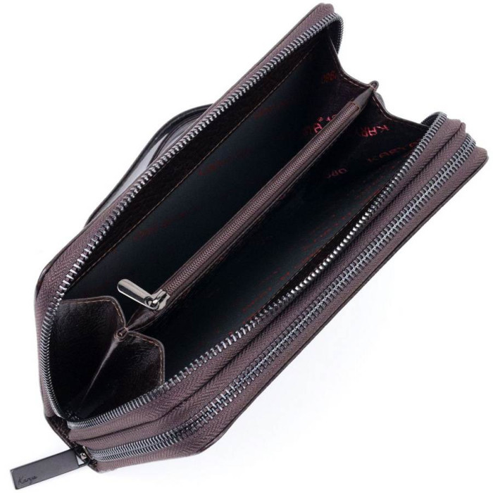 - у першому відділі розташовано два відділи для купюр або документів, кишеня на блискавці посередині;