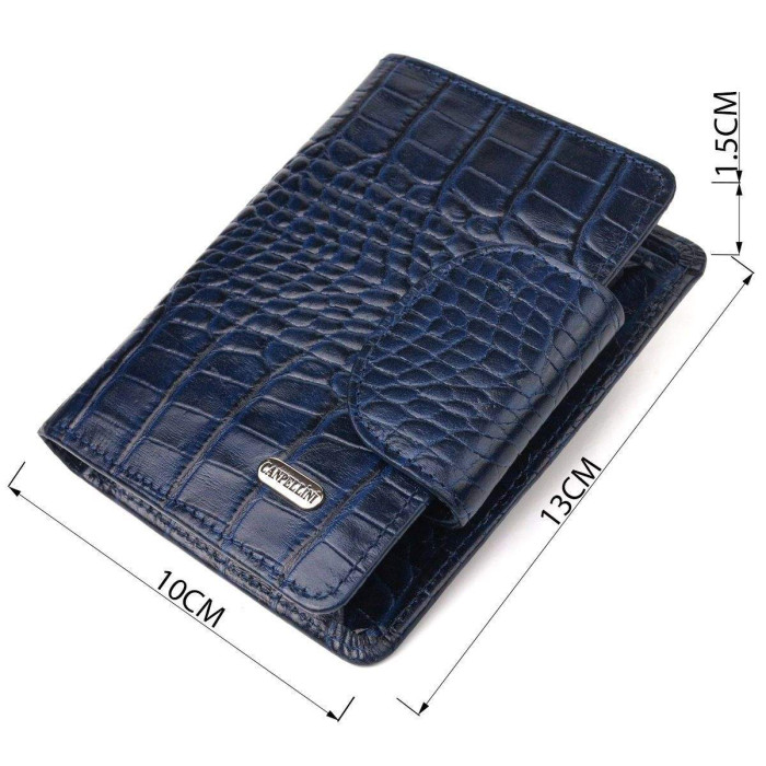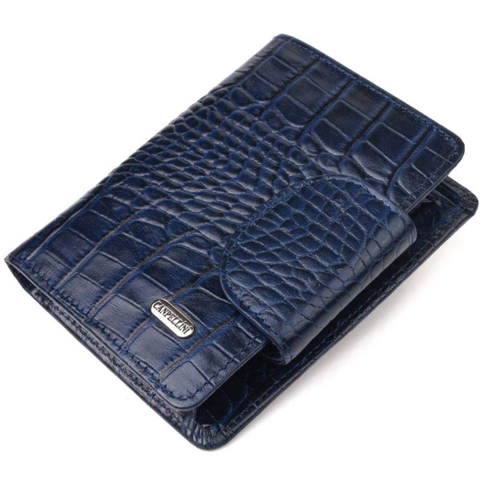 Жіночий модний гаманець компактного розміру з натуральної шкіри з тисненням під крокодила. Аксесуар має відділення для купюр з перегородкою, монетницю, що закривається клапаном на кнопку, приховану кишеню та сім відсіків для карток, два з них під сіточкою. Закривається аксесуар у два складання хлястиком на кнопку. Якісний шкіряний аксесуар завжди вважався показником смаку та достатку, саме такі вироби представлені у нашому магазині, у нас кожен знайде щось для себе.