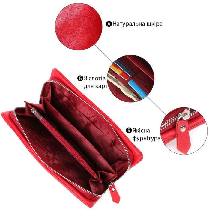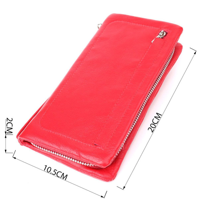 Зручний жіночий гаманець-клатч, який поєднує практичність, функціональність і елегантний дизайн. Виконаний із натуральної шкіри високої якості, він надійний у повсякденному використанні та довго зберігає акуратний зовнішній вигляд. Гаманець доповнений міцною підкладкою та якісною фурнітурою. Запакований у фірмову білу коробку – відмінний вибір для стильного подарунка чи особистого задоволення.
