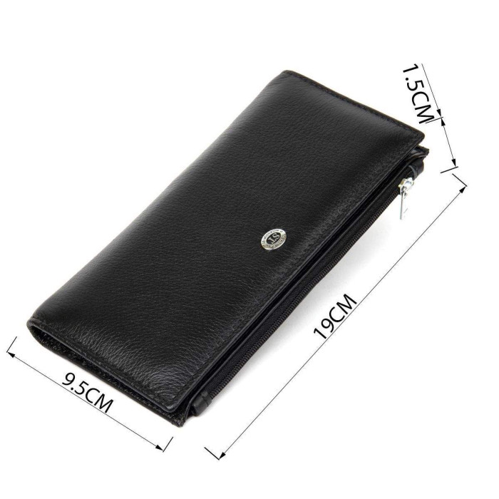 Хороший добротний жіночий гаманець на кожен день в класичному чорному кольорі. Виготовлений з м'якої і приємної на дотик натуральної шкіри, яка має відмінні експлуатаційні характеристики. Наповнення даної моделі порадує своєю практичністю і функціональністю. Такий гаманець стане бажаним подарунком для жінок будь-якого віку і соціального статусу.