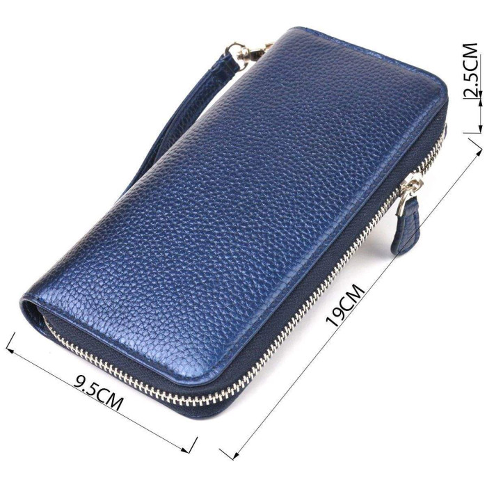 Оригінальний жіночий гаманець, з натуральної шкіри. Аксесуар має три основні відділення, в які поміщаються купюри всіх номіналів, дві перегородки, одна з них на блискавці, вісім кишень для карток, дві прилеглі кишені та знімний кистьовий ремінь. Закривається аксесуар на блискавку. Відмінний аксесуар, надійний виробник, який прослужить дуже довго.