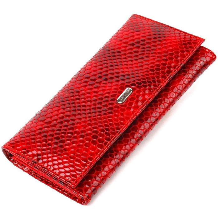 Жіночий яскравий гаманець з натуральної фактурної шкіри з тисненням під змію. Аксесуар має три широкі відділення для купюр, з двома перегородками, одна перегородка закривається на блискавку, містку монетницю зовні, чотири приховані кишені та шість кишень для карток. Закривається аксесуар клапаном на кнопку. Якщо Ви хочете порадувати себе та здивувати близьких, то неодмінно купуйте шкіряні аксесуари в нашому магазині, якість і ціна Вас однозначно порадує.