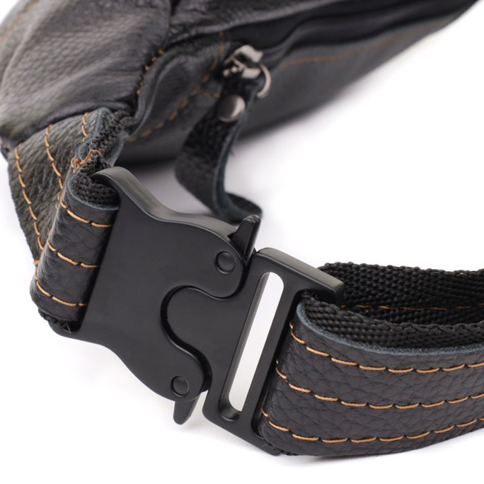 Незважаючи на компактні розміри, сумка дуже функціональна: вона оснащена основним відділенням на блискавці та зовнішньою кишенею, що ідеально підходять для зберігання смартфона, документів, ключів та інших дрібниць. Регульований текстильно-шкіряний ремінь дозволяє носити бананку на поясі, забезпечуючи свободу рухів та комфорт протягом дня.