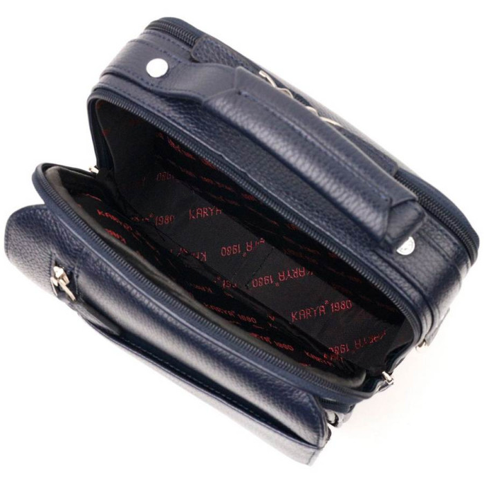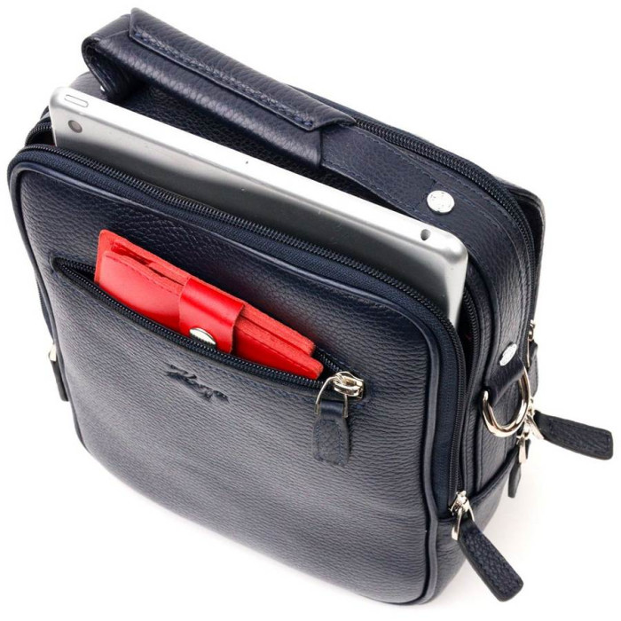 Чоловіча сумка через плече Karya виготовлена з натуральної шкіри. Зручна та багатофункціональна модель. Чудовий варіант на кожен день. Шкіра флотар стійка до зношування і довго носиться. На ній не видно подряпин і виглядає дуже ефектно. Модель доповнена фурнітурою кольору срібла. Усередині сумки якісна підкладка. Буде ідеальним варіантом для подарунка близькій людині.
