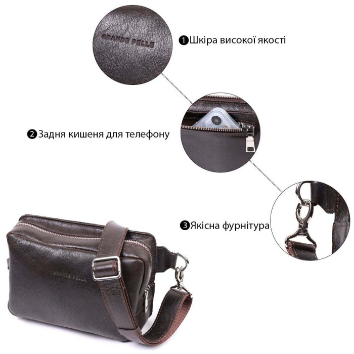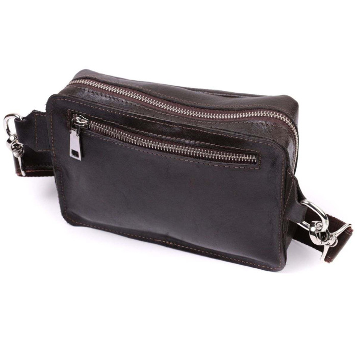 На вигляд невелика сумка-бананка, але повірте дуже містка та зручна. Модель унісекс, підійде як жінкам, так і чоловікам. Носити таку сумку можна на поясі, а також через плече, це дуже зручно у подорожах, коли всі найцінніші речі мають бути під рукою. Виріб виконаний виключно з натуральної італійської шкіри найвищої якості, яка має благородний блиск та приємну фактуру. Сумка доповнена якісною фурнітурою срібного кольору, шви рівні та акуратні. Аксесуар упакований у стильну фірмову сумку з повсті, що дуже зручно, якщо аксесуар призначений на подарунок.