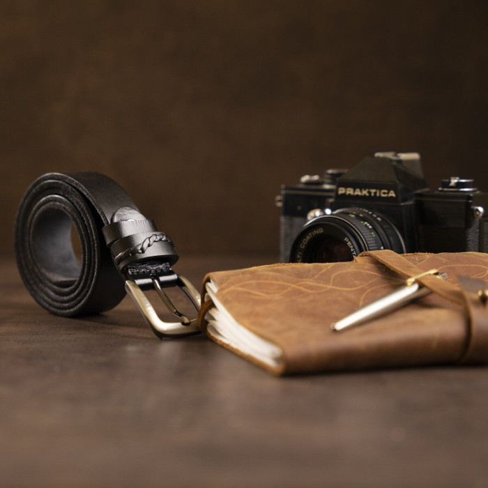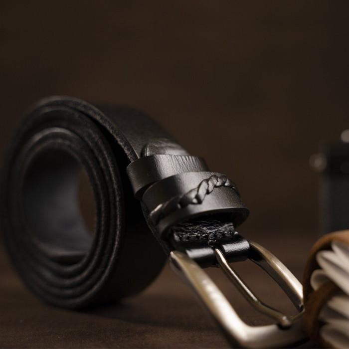 Тонкий чоловічий ремінь в класичному стилі з натуральної шкіри. Виріб підійде для тих, хто не любить масивні аксесуари. Ремінь оснащений пряжкою з міцного металу з закругленими кутами. Колір пряжки - срібло. З внутрішньої сторони ремінь сірий. У комплекті фірмова картонна коробка.