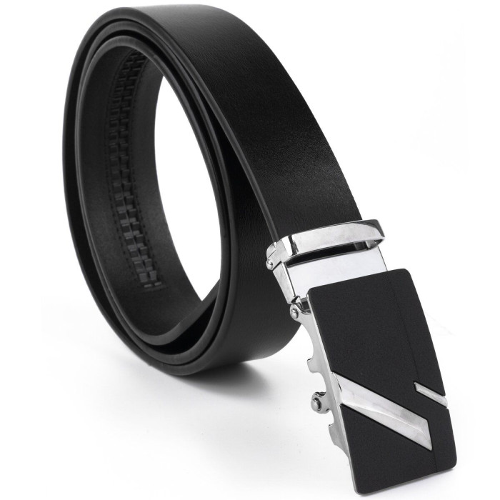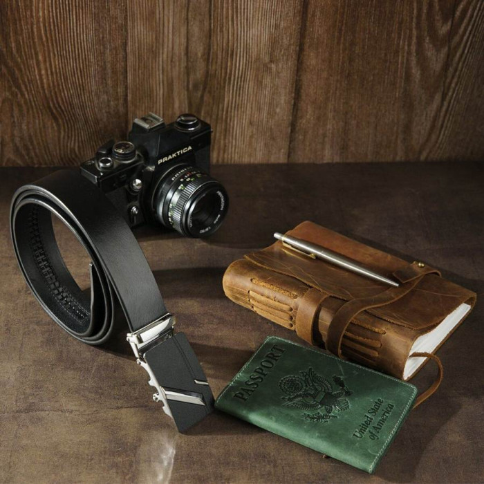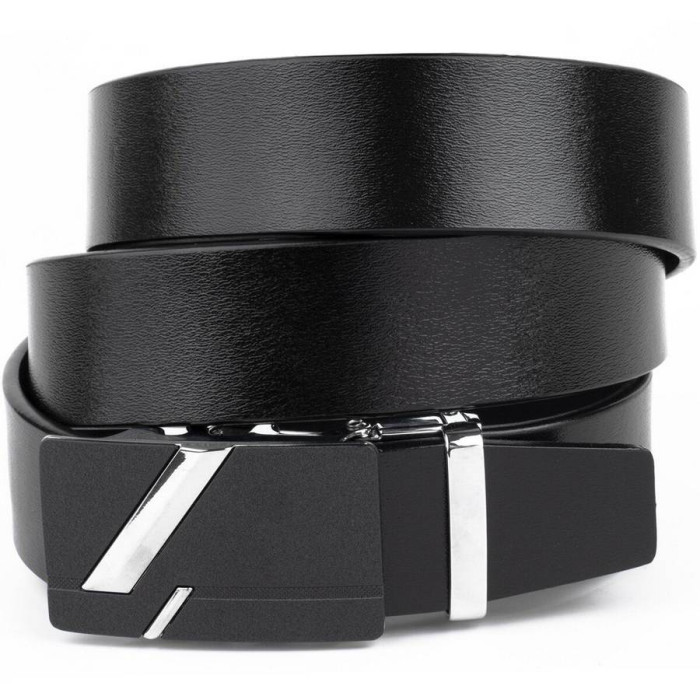 Шкіряний ремінь для справжніх чоловіків з продуманим до дрібниць дизайном. Ремінь з щільної шкіри. Доповнено аксесуар солідною пряжкою автомат з надійного металевого сплаву чорною матовою заливкою і сріблястими діагональними лініями. Ремінь довго проноситься і стане прекрасним завершенням вашого образу.