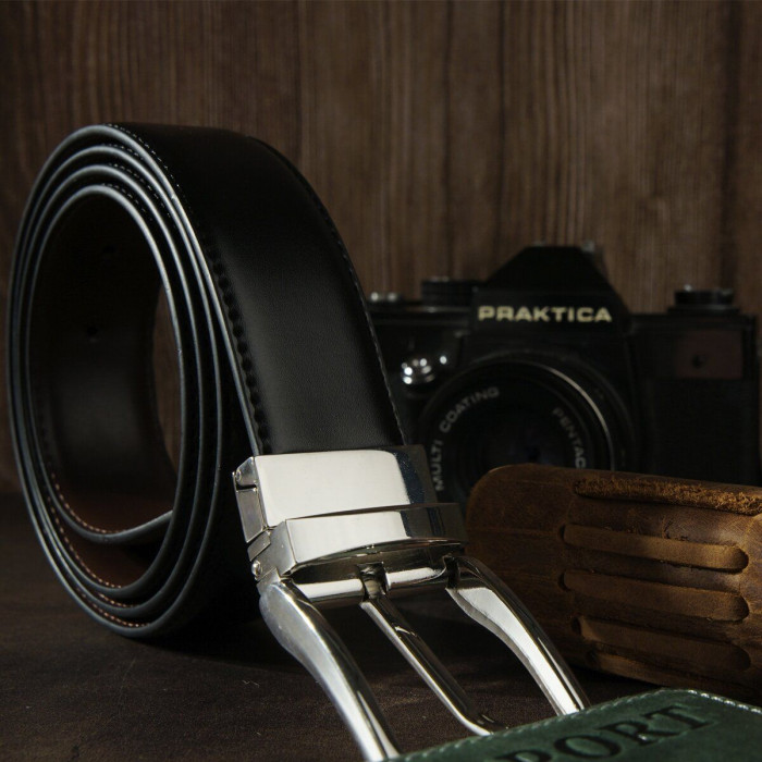 Ремінь з натуральної шкіри в поєднанні двох кольорів буде ідеальним рішенням для чоловіків, яким складно визначитися з кольором-фаворитом. В одній моделі поєднується два найпопулярніших відтінки: чорний і коричневий. Тонкий ремінь прекрасно підійде до штанів. Пряжка - класична сріблястого кольору. Модель підійде як для урочистих подій, так і на кожен день. Шкіряний ремінь буде відмінним подарунком для будь-якого чоловіка. Ви також можете придбати подарункову упаковку на нашому сайті.
