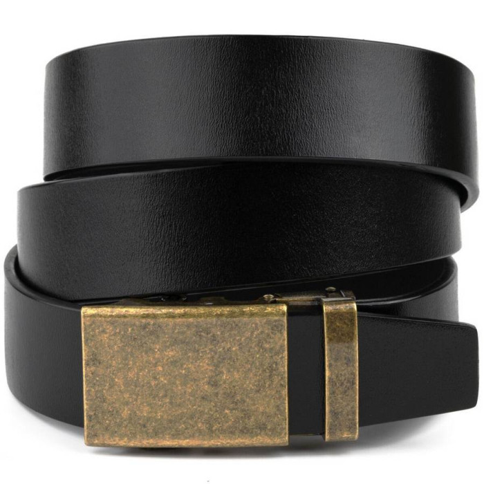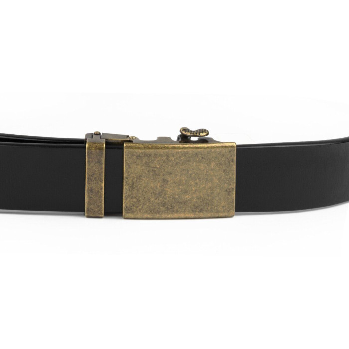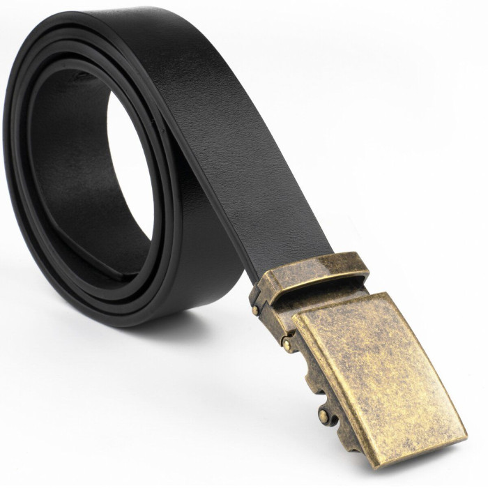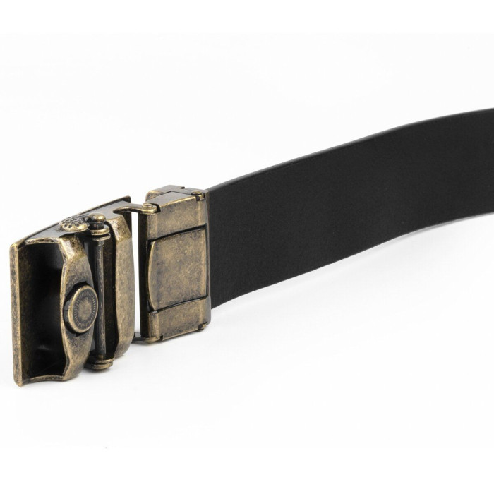 Шкіряний чоловічий солідний ремінь класичного чорного кольору, з автоматичною пряжкою кольору латуні. Виконана з якісного сплаву. Шкіряний ремінець дуже універсальний і входить в базовий гардероб будь-якого чоловіка. Автоматична пряжка дуже практична і зручна. Ремінь підійде як під штани, так і під джинси. Виробництво - фабричний Китай. Якщо ви перебуваєте в пошуку подарунка для чоловіка - рекомендуємо вам даний ремінь.