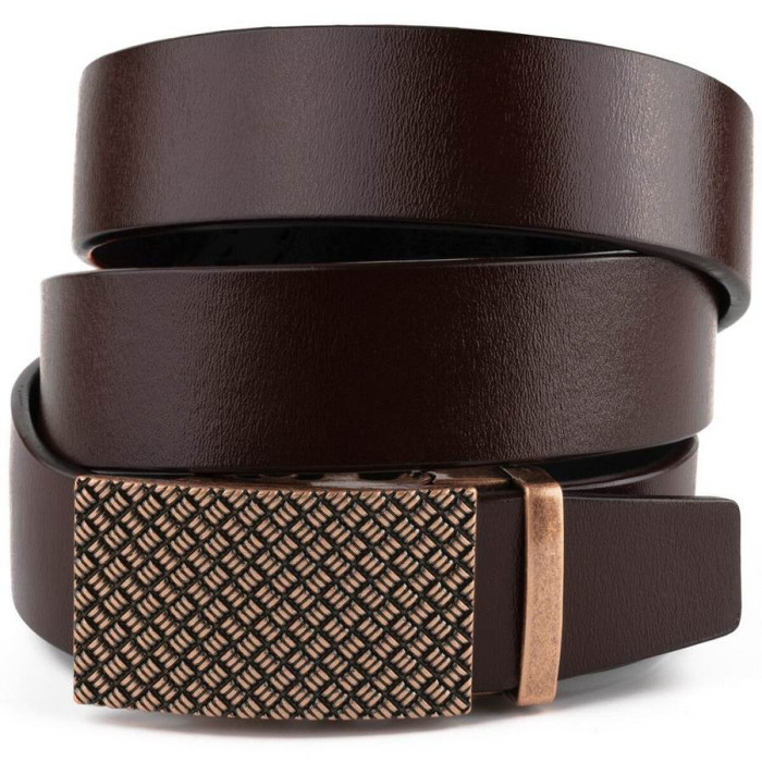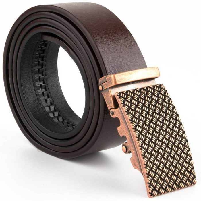 Стильний чоловічий ремінь з натуральної шкіри. Класичний коричневий колір підійде під будь-який одяг і взуття. Доповнено ремінь міцною пряжкою золотистого кольору з помаранчевим відливом і тисненням яке нагадує в'язаний светр. Виробництво - фабричний Китай високої якості. Модель підійде як під штани так і під джинси і додасть завершеності вашому образу. Ми впевнені на 100%, що аксесуар прослужить далеко не один рік. Рекомендуємо до покупки даний ремінець.