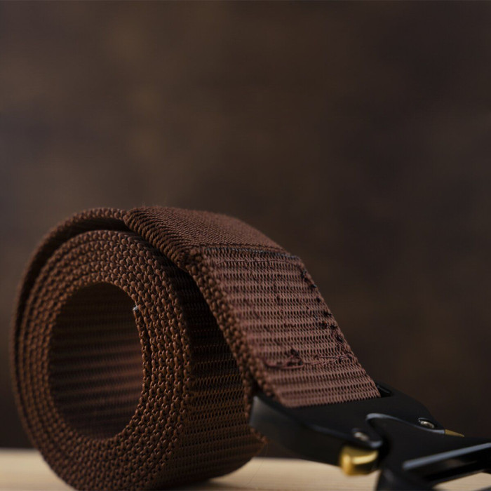 Рекомендуємо вам текстильний ремінець, якщо ви хочете заощадити ваш бюджет і при цьому отримати гідну якість. Коричневий ремінь дуже практичний. Виріб має автоматичну пряжку чорного кольору. Виробництво - фабричний Китай. Ремінь нічим не поступається більш дорогим моделям. Виріб стане ідеальним подарунком для будь-якого чоловіка.