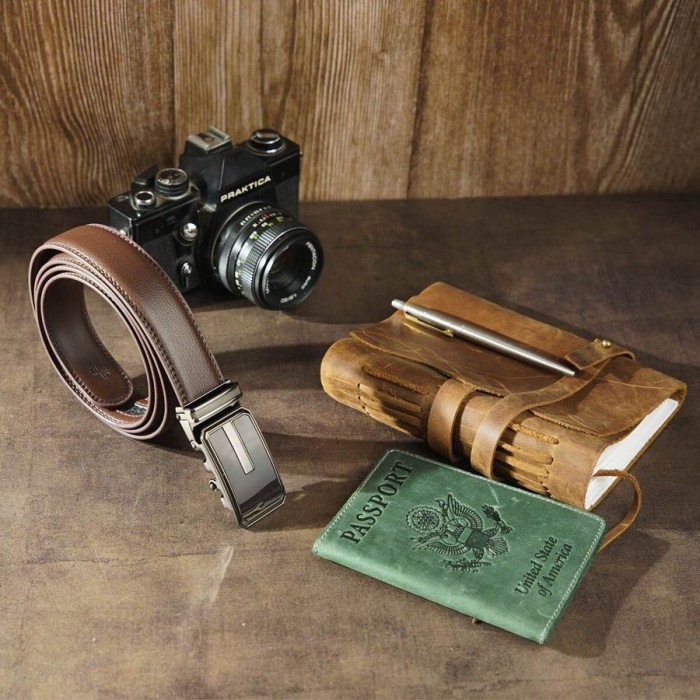 Тонкий і солідний чоловічий ремінь коричневого кольору з натуральної шкіри. Модель виготовлена з цільного полотна. У дизайні аксесуара продумана кожна деталь. Полотно ременя і пряжка красиво переливаються на сонці надаючи вашому образу завершеності і елегантності. По краях полотно ременя прошито рівними рядками. Ремінь незамінна річ в гардеробі будь-якого чоловіка. Особливо якщо ремінь з якісного матеріалу він буде служити вам значно довше. Варто відзначити, що якість ременя нічим не поступається дорогим брендам, але цінник - на порядок нижче. Рекомендуємо вам дану модель як для себе, так і для своїх близьких.