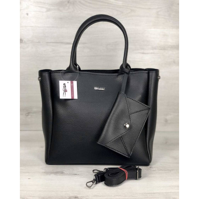 В комплекте есть маленький кошелечек, который легко крепится на ручку сумки. Размер кошелечка: длина 15 см., ширина 1 см., высота 10 см.