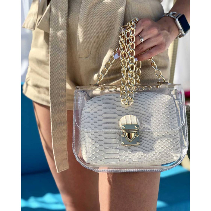 Стильная молодежная сумка Селена выполнена из кожзаменителя высокого качества и силикона. Крышка открывается при помощи собачки. Плечевой ремешок выполнен в виде металлической цепочки длиной 120 см.